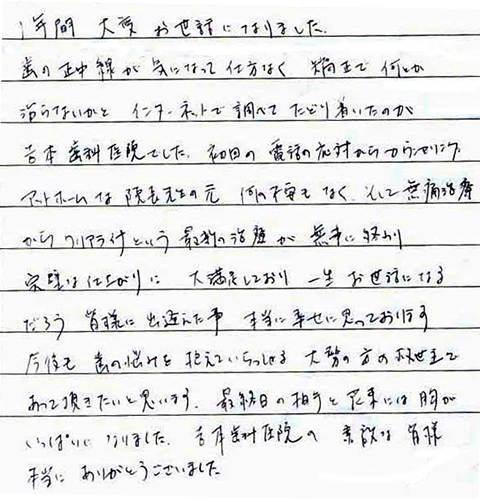 こうやって患者さんからリアルにお言葉を頂けることは私たちにとって何よりも励みになります。