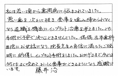 藤井様は、もともと吉本歯科医院へずっと通って下さっていた患者さんです。