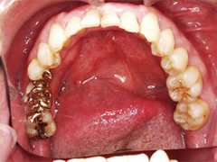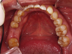 1.奥歯がない状態で過ごしていた期間が長いため歯がない部分に隣の歯が倒れだして全体の歯並びを崩しはじめている