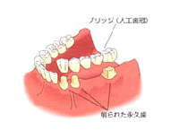 ◆両隣の健康な歯を削って人工の歯をかぶせる場合 |