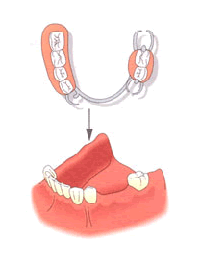 ◆奥に歯がなく、金属製のバネで入れ歯を支える場合 |