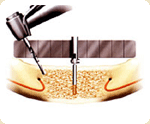 顎の中央に2mmのツイストドリルを使用し、深さ10mmまで形成します。 |