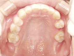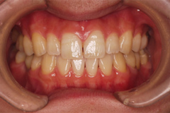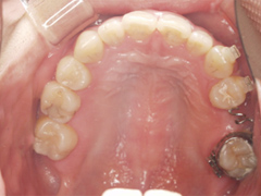 歯がない期間が長く続いたため隣の歯が横に倒れてしまい、歯と歯との間に隙間が2ケ所できてしまっていたため、インプラントの前に矯正治療で隙間をなくす治療を行う