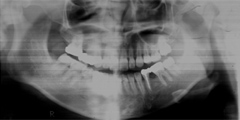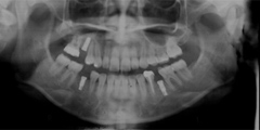 口内写真とパノラマレントゲンを撮影し、まずは顎の骨の状態まで詳しく確認しました。