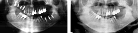この方の場合、骨が神経の出口(オトガイ孔)まで磨り減ったためにこのように写ります。