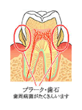 お口の中にいるばい菌が原因で歯の周辺の組織をダメにしていく病気です。