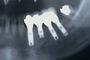 実際にインプラントを除去せざるを得ない周囲炎(periimplantitis)、また、過重負担による骨破壊が考えられます。